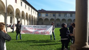 La protesta si è poi spostata nelle sedi di S.Agostino e Salvecchio dove ha sede il Rettorato e dove è stato chiesto al Rettore in modo simbolico, in quanto non si è mostrato, di riprendere le trattative.