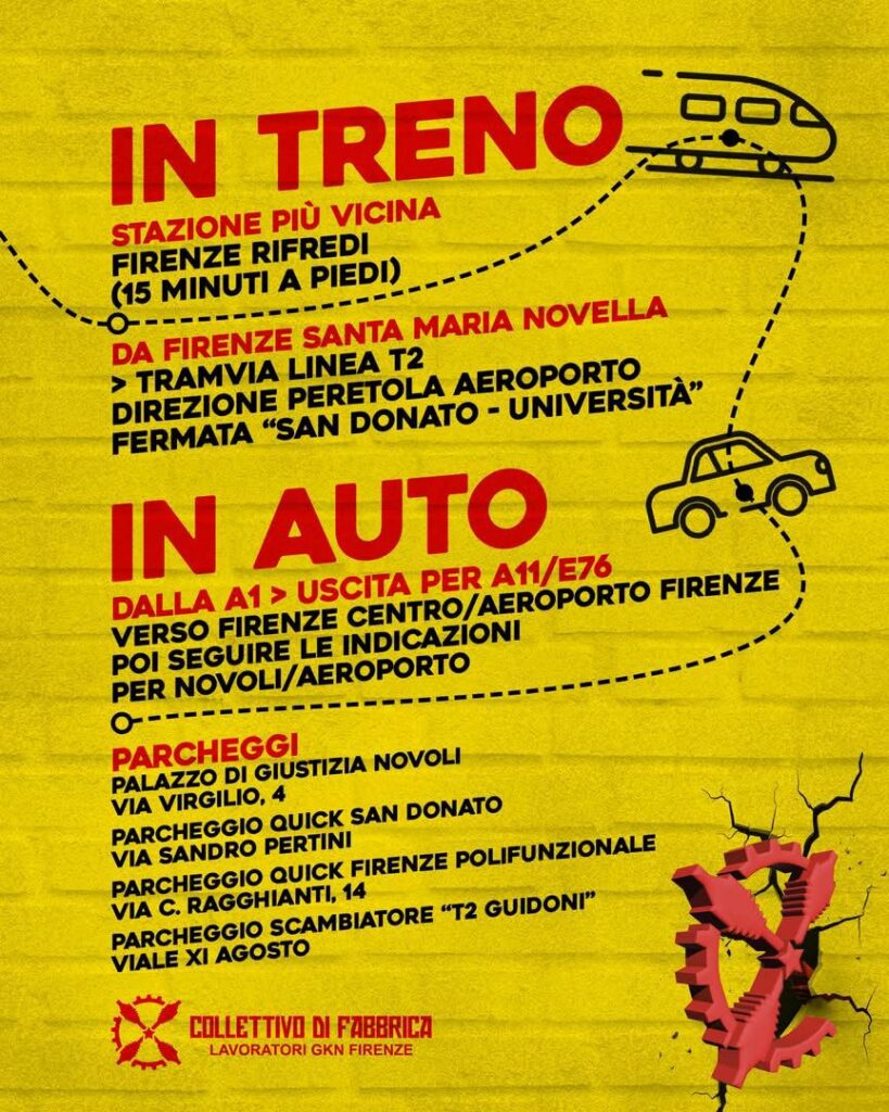 Il Collettivo di Fabbrica dà appuntamento sabato 18 ottobre alle 14.30 in piazza Ugo di Toscana, all’interno dell’Università di Novoli, dove una volta c’era la Fiat, poi diventata Gkn Firenze.